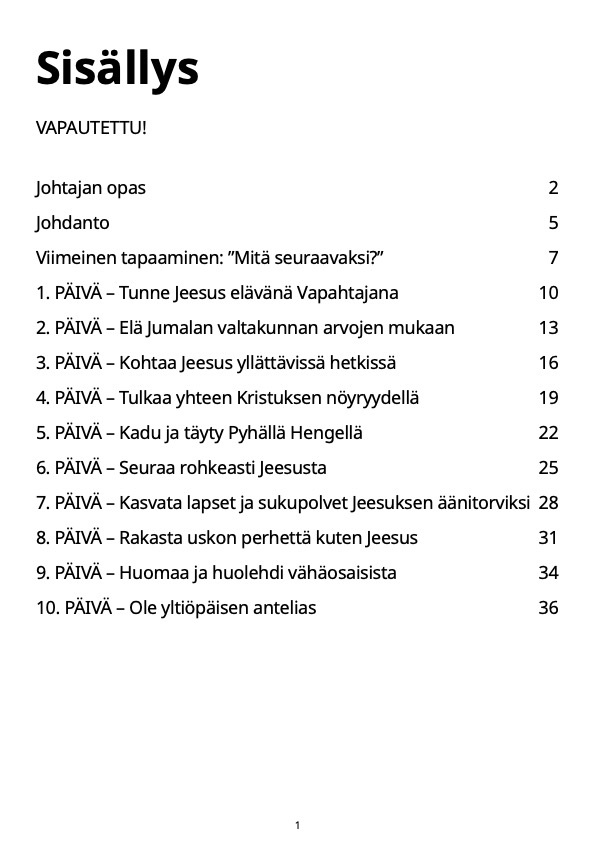 (Klikkaa linkkiä tai sivukuvaa, sisältää johtajan ja osallistujan materiaalin, sisällysluettelon otsikoita/sivunumeroita voi klikata!)